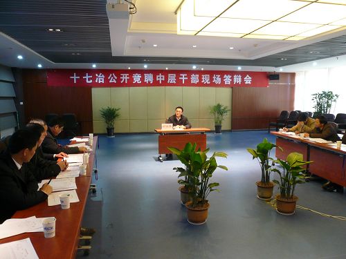 元月23日-24日,中国十七冶集团有限公司在总部机关二楼举行项目总工程师、副经理公开竞聘现场答辩会,来自施工一线的47名具有丰富施工与管理经验的各级主管级干部参加了竞聘。竞聘分市场开发(经营管理)、机电、土建、路桥四个专业进行。公司领导与各位专家组成现场答辩测评小组,进行现场测评选拔。