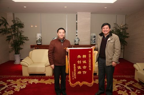 蒋筱春副总经理向十七冶赠送了锦旗和感谢信,王建国总经理愉快地接受了锦旗和感谢信。蒋筱春说,我们是专程来感谢十七冶的,十七冶在这次高线厂技改工程中,特别能战斗,干得非常出色,我们表示衷心的感谢,特赠送锦旗和感谢信,表示我们的敬意。