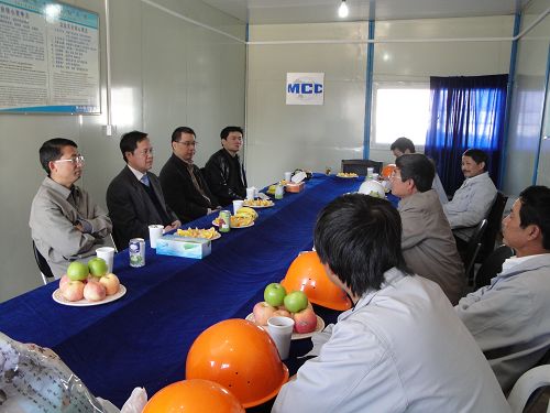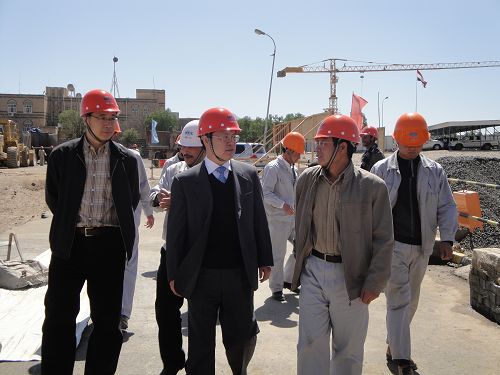 刘登林大使一行对项目经理部办公、生活、及现场进行了实地考察,对不远万里、境外创业的项目部员工表示亲切的慰问。在听取了项目经理部关于工程项目目前情况的汇报后,刘大使对项目经理部的基地建设给与了充分肯定,介绍了目前国内公司在也门市场的总体形势,并对项目部今后加强与业主和国外监理的沟通和联系、加强内部管控、做好工程项目、规避经营风险等方面提出了总体要求和建设性意见。