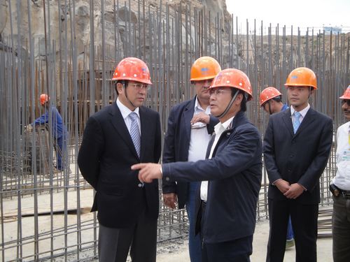 在施工现场,康董事长听取了项目经理王西品的工作汇报,对项目部前一阶段的施工质量和安全工作表示肯定。他希望项目部能够保持良好的势头并发挥自己的特长,争取创出品牌,并就项目运作、项目质量、安全等方面的工作提出了要求。