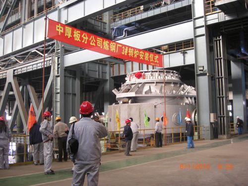 1月6日10点08分,十七冶浦钢二步工程项目经理部在转炉十米平台举行 3#转炉安装仪式。中厚板分公司副总经理、工程总指挥吴章维,炼钢厂厂长谈建强等出席,中厚板分公司各部门领导、监理单位,设计单位,十七冶等工程技术人员共100余人参加了仪式。