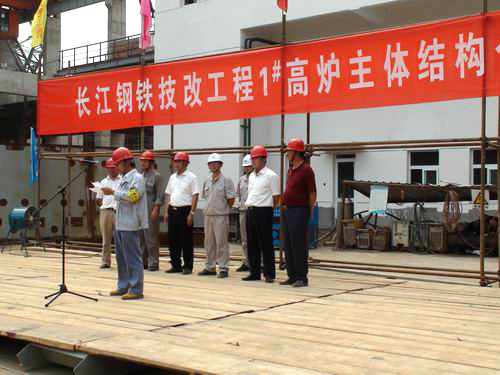 1号高炉是长江钢铁有限公司产能置换技改项目的主体工程。工程主体结构的合拢,标志着工程施工已进入安装调试阶段,为工程的顺利投产奠定了良好的基础。
