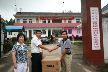 在霍里中心小学操场上,举行了“中国十七冶集团向花山区学校赠送电脑仪式”。花山区政协副主席、统战部部长王笑、区教育局党工委书记凌士钟与霍里中心小学、三姚小学、冯桥小学和濮塘小学的四位校长及霍里中心小学100多名师生参加了赠送仪式。