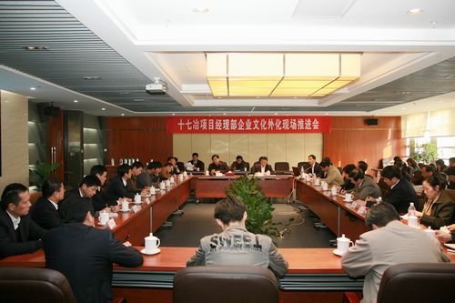 会前,全体与会人员参观了公司当涂安置房工程项目部和马钢工程项目部的企业文化外化建设,就项目经理部企业文化外化工作进行了广泛的交流和沟通,决心以本次推进会为契机,认真抓好企业文化外化工作,全力打造十七冶品牌。