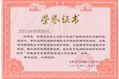 日前,安徽省环境保护产业协会授予十七冶集团公司“安徽省环境保护优秀施工示范单位”称号,并颁发了荣誉证书和奖牌。