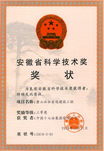 获得安徽省科学技术奖三等奖的项目成果是《黄山云谷索道建设工程》,由冶金工程技术公司研发;获得2011年度全国冶金建设行业优秀QC成果二等奖的有《凌云大桥喷铝质量控制》、《开展QC活动,控制沉井下沉偏差》、《采用公差理论控制沥青路面施工厚度》、《提高减定径机组润滑管道冲洗质量》和《提高梅钢二期公辅工程砼建(构)筑物的观感质量》等5项QC成果。