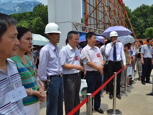 代表们视察了正在施工中的一期工程“星舞台”,其建筑面积23000㎡,于5月9曰开工。星隆国际城项目部的员工千方百计克服施工场地夹小、土方外运时间限制等困难,积极创造条件加速施工进程。一个月来,完成挖运土方