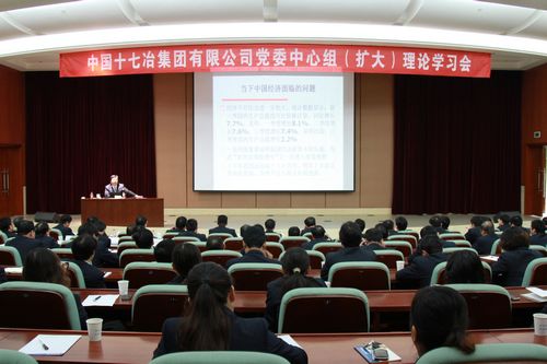 114上午,中国十七冶集团党委召开中心组(扩大)理论学习会。公司领导王建国、喻世功、彭毅忠、唐灶荣、尹万云、曹永忠、方荣华、章宏金及董事会秘书汤小建、总经理助理、副三总师、总部机关室主管级以上人员、在马各二级单位领导班子成员、在马各项目经理部中层以上管理人员,以及公司组织文化系统全体人员共计约近200人参加了学习会。会议由公司副总经理、纪委书记、工会主席方荣华主持。