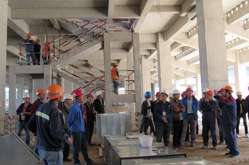 9月30日,由兰州城投公司金杰贵主任组织的科教园区各项目工程技术部业主代表、质量安全管理部、三校一区各标段、现代职业学院各监理,施工单位项目经理、技术负责、总监、总监代表到十七冶甘肃分公司承建的甘肃省体育馆项目施工现场观摩。