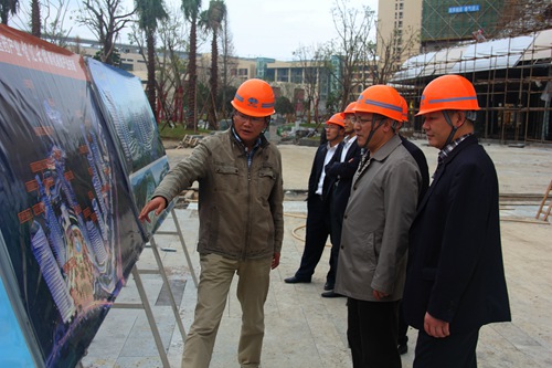在施工现场,曹永忠副总经理听取了项目负责人关于项目概况和施工进展情况的汇报,对项目部展现的“一天也不耽误、一天也不懈怠”中冶精神和高效工作给予高度称赞,并表示,打造“高端城建”,实现健康发展,就是要瞄准大项目和综合体,在地标性、代表性项目上展示实力,做出品牌,树立丰碑。曹永忠副总经理还就强化工程质量管理和安全管理提出工作要求。