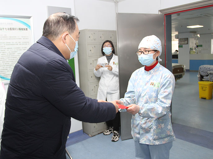 焦艳常务副部长看望了在治疗的十七冶扶贫干部刘金海,并送上组织新春关怀和慰问金。她高度肯定了十七冶以及刘金海同志一直以来为扶贫工作做出的重要贡献,关切询问了治疗进展和康复情况并叮嘱随行人员全力做好协调服务和保障工作。