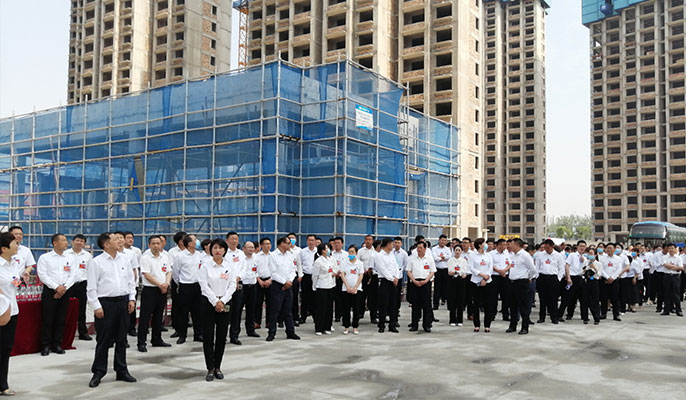 6月24日上午,灵璧县委常委、常务副县长武云峰率中国共产党灵璧县第十四次代表大会党代表300余人到中国十七冶集团城建分公司承建的灵璧县金色名郡项目调研。