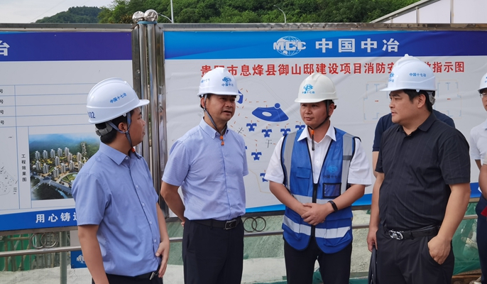 7月5日,贵州息烽县委副书记、县长何明到中国十七冶集团交通分公司承建的息烽县御山邸项目调研指导工作。息烽县副县长谢洪,息烽县城投房地产开发公司董事长曹廷友等参加调研。