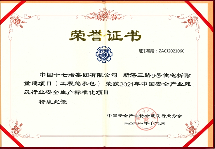 青岛新湛三路9号住宅项目荣获2021年中国安全产业建筑行业安全生产标准化项目称号