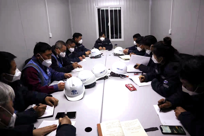 周金龙副总经理对现场工作进行了细致全面的分工,并要求管理人员要带头开展工作,以不怕苦、不怕累的劲头奋战一线,为工人们做好表率;要坚定“能干就不要等”的原则,见缝插针、抢抓机会组织施工作业,努力推动施工进度;要进一步抓牢安全工作,开展好交通管理、疫情防控等细节工作,全力营造安全环境;要尽全力满足工人需求,不能轻易地对工人们的需求说“不”,当好他们的服务者和管理者;积极践行“24小时工作法”,在全力确保人员健康和施工安全的前提下,星夜兼程、昼夜大干,不负上海市政府和上海人民期望,不负中国五矿、中冶及十七冶各级领导重托,全力打造一座精品优质现代化方舱医院,为上海打赢疫情防控攻坚战贡献央企力量。