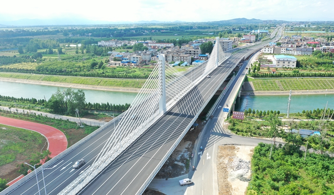 南阳市中心城区至鸭河快速通道全长约33公里,分为鸭河工区段、卧龙区段、龙祥互通段和城区段四个子项目。其中卧龙区段长18.188公里,设计时速80公里,双向八车道,道路采用钢桁梁桥跨越商南高速、采用矮塔斜拉桥跨越南水北调中线干渠;城区段长1.747公里,地面辅道设计时速40公里、双向四车道,高架桥设计时速60公里、双向六车道。本工程作为市中心城区城市更新提质建设三年行动计划重要道路,通车后对加强市中心城区、龙王沟景区、紫山区域、鸭河工区联系,构建“十字三环六放射”立体交通具有重要意义。