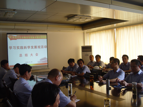 6月24日下午,物流与装备成套公司召开学习实践科学发展观活动总结大会。物流与装备成套公司党委书记、经理王振堂作了学习实践科学发展观活动的总结报告。会议由公司党委副书记史厚强主持。