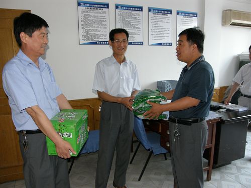 7 2日上午,工程管理公司党总支书记陈光山带领工会的有关人员,对公司项目部夏季高温期间的安全生产、劳动保护和防暑降温工作进行了认真检查,并为各项目部送去了防暑降温茶叶、饮料。
