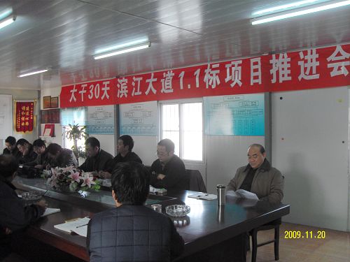 1120下午,中国十七冶南京滨江大道1.1标项目部召开大干30天确保年底通车工程推进会。十七冶路桥公司领导班子成员、相关部门负责人及项目部、施工队主要负责人参加会议。