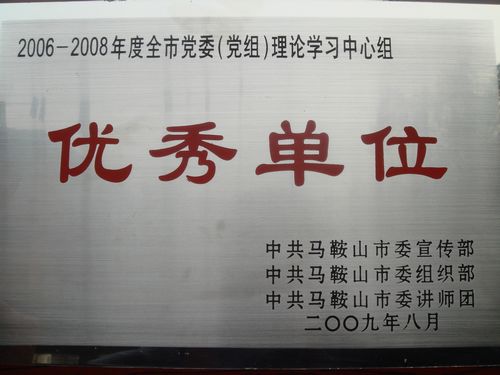 日前,在马鞍山市2006---2008年全市优秀党委(党组)理论学习中心组表彰中,十七冶装备制造公司党委理论中心组再获殊荣。