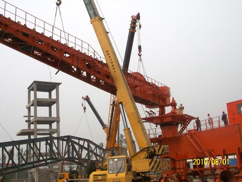81,由水泥工程公司承建的河南焦作千业水泥厂4500t/d熟料生产线圆形堆场堆臂子项工程,顺利实现一次吊装成功。