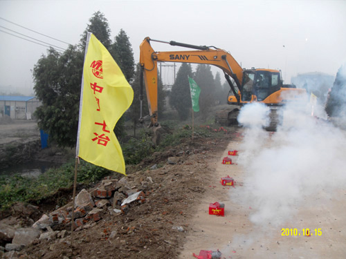 10151008分,路桥工程技术公司举行南京头关雨水泵站压力箱涵穿堤段破堤开工仪式,业主、监理、南京水利部门、河道管理处、建邺区农委及防汛办、项目部等相关人员参加了开工仪式。