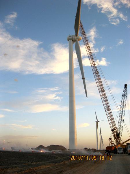 119下午1818分,由风力与太阳能发电工程技术公司承建的甘肃龙源瓜州671.5MW风电机组的安装主体工程顺利竣工。