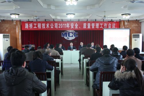 29下午,路桥工程技术公司召开2011年安全、质量管理工作会议。公司领导班子、各项目经理部及公司机关、专业处70余名管理人员参加了会议。