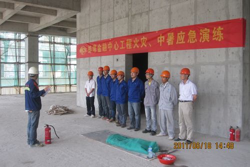618下午,城建工程技术公司蚌埠金融中心项目部在施工现场举行了一场火灾、中暑应急救援预案实战演练。