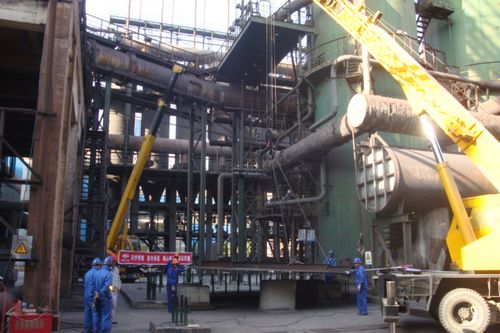 621,甘肃分公司承建的榆钢公司热风炉工程顺利完成第一带炉底板吊装。