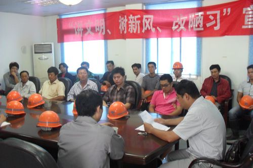 714上午,马鞍山市质量监督站副站长苏青一行三人应邀冒雨来到十七冶拆迁安置房项目部开展“讲文明、树新风、改陋习”宣讲活动。项目部全体管理人员和部分施工单位代表参加了宣讲活动。