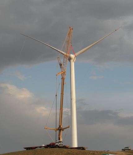 69下午,由风力与太阳能发电工程技术公司承建的内蒙古化德风电场首台金风1.5MW风机成功完成吊装。