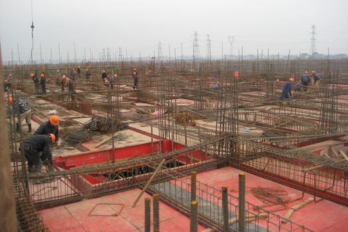 紫荆花涂料(上海)有限公司年产28万吨涂料产品、配套溶剂及辅料产品项目一期工程(土建部分),共有24个单体项目,建筑面积29900多平方米(含主体和生产厂房)。近期上海天气多雨,给施工带来诸多困难,紫荆花项目部充分发扬“高效严谨、精细务实”的企业作风,组织参战人员顶风冒雨抢工期、保节点,提前完成了二层作业平台钢筋的绑扎任务,质量和进度都达到规范要求,320主体结构封顶交安提供了保证,受得了业主、监理等一致好评。