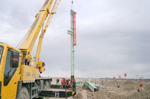 327下午,由十七冶冶金工程技术公司承建的新疆宝钢克拉玛依管加工工程管加工车间第一根钢柱顺利完成吊装,正式进入钢结构安装阶段。