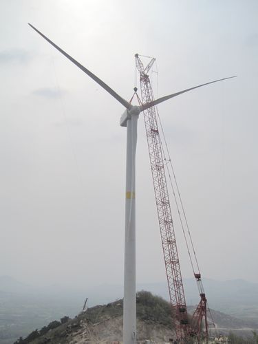 47上午,由十七冶风力与太阳能发电工程技术公司承建的河南泌阳风电场首台风机叶轮安装顺利就位。