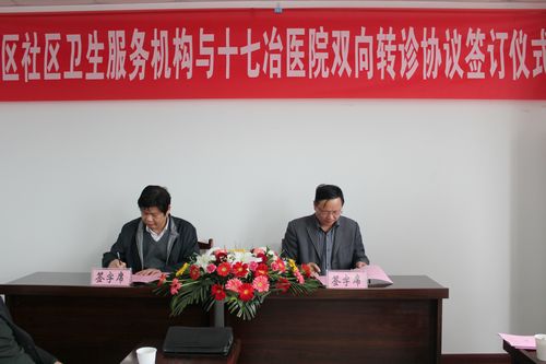 49下午,在雨山区卫生局十七冶医院与雨山区24家卫生服务机构签订了双向转诊的服务协议。