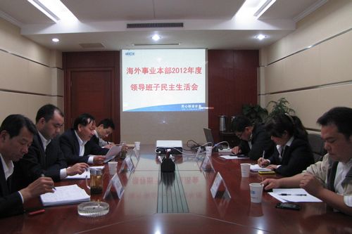 112,海外事业本部召开了2012年度领导班子民主生活会,本部在国内的领导班子成员参加了会议,集团公司组织文化部副部长华群参加了会议。