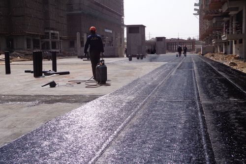 该地下室防水施工采用了高分子材料,该种卷材具有不透水、低温柔度、抗变形性能及自愈性能好等特点,易于施工,可以提高铺设速度和防水性能。施工中,项目部运用高温焊接技术,在卷材与卷材之间的交接处焊接并保证焊缝严密,确保了工程质量。