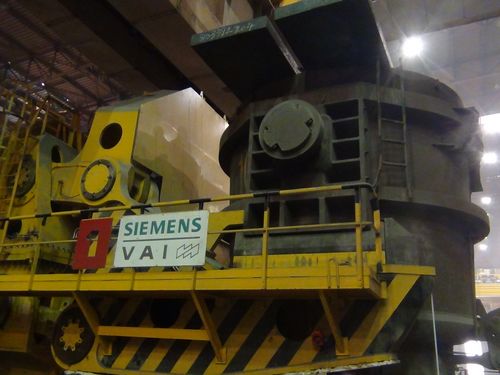 马钢四钢轧连铸项目大包回转台,是马钢四钢轧工程安装的最大的单体设备,直径5.52米,回转半径6.5米,高10.6米,提升高度0.8米,本体自重334吨,设计年产量240万吨,该设备安装完成后,成功进行了单体试车。这次超负荷试验是对大包台两边平衡加载钢包和钢锭板材,最高荷载量达到625吨,超出正常荷载量145吨,负载后大包台各项性能良好,各项读数反映正常,试验结果显示,大包回转台已具备试生产条件,超荷载试验取得圆满成功。