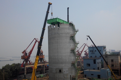 该工程工期紧,任务重,施工场地狭小,仓顶钢结构平台吊装严重制约着除尘基础框架及风机基础施工,特别是南京青奥会即将召开,对环境保护要求非常高。为确保工程顺利推进,项目部统筹安排,提前做好施工策划,项目员工以一天也不耽误、一天也不懈怠的进取精神,以实际行动践行着高效严谨、精细务实的企业作风,确保每一榀构件都不影响现场施工,按时完成仓顶钢平台组装工作,得到业主及监理单位的一致好评。