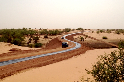 该项目地处撒哈拉沙漠,温度高,施工环境极其恶劣、资源极度匮乏。项目部面对、工期紧、任务重、质量要求高、施工难度大等种种困难,以“一天也不耽误、一天也不懈怠”的工作作风,精心组织,合理安排,加大内部管理力度,严把透层油施工质量关和进度关,切实保证工程质量和进度,顺利完成了透层油施工任务。工程质量受到业主和监理的一致好评,为八月份全面完成路面的铺筑任务打下了坚实的基础。