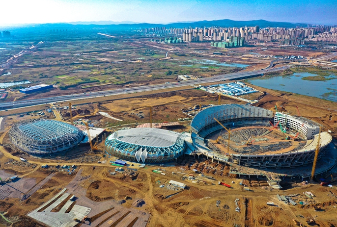 12月2日,中国十七冶集团城建分公司承建的滁州市奥体中心游泳馆、体育馆顺利完成屋面结构飘带合龙,标志着两馆钢结构全面完工。
