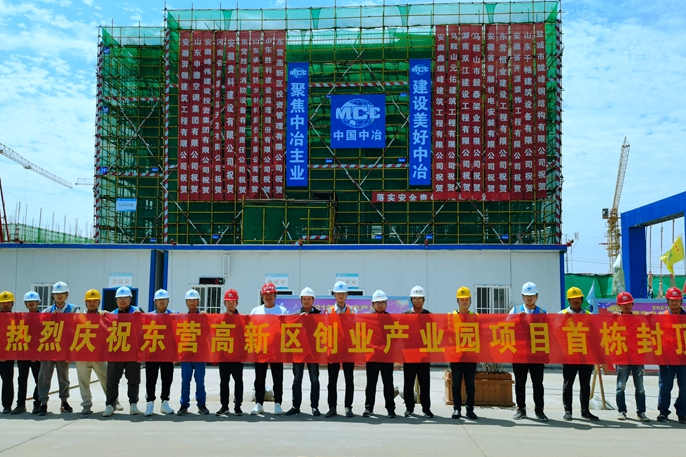 6月18日,中国十七冶集团山东分公司承建的东营高新区创业产业园项目实现首个楼栋主体结构封顶。