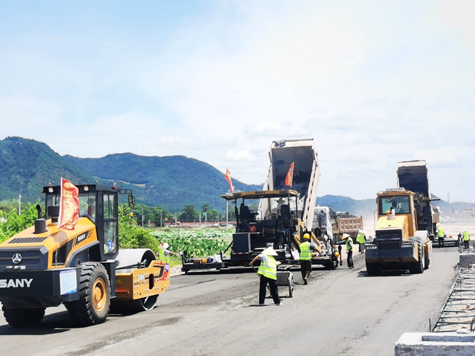 水稳底基层试验段位于项目k161+560-162+560路基左幅,摊铺长度1公里,宽度12.25米,松铺厚度21.5厘米,压实厚度16厘米,摊铺总面积12250平方米。为保证水稳底基层试验段摊铺顺利完成,项目部积极克服时间紧、任务重、质量要求高、安全管控严等诸多困难,精心制定施工计划,合理调配各类资源,集中力量大干攻坚,不断提高施工效率;多次召开技术专题培训会,对试验、测量、设备操作等相关人员进行专题培训及交底,严把原材料进场关,严控水稳混合料拌合、运输、摊铺、碾压、检测、养生等各个环节,确保摊铺质量符合设计要求;强化现场组织协调,做到安全技术交底落实到人,现场安全防护规范有序,文明施工措施得力,安全施工得到有效保障。此次水稳底基层试验段摊铺,标志着项目水稳底基层摊铺正式启动,为全面启动路面摊铺施工奠定了坚实基础。