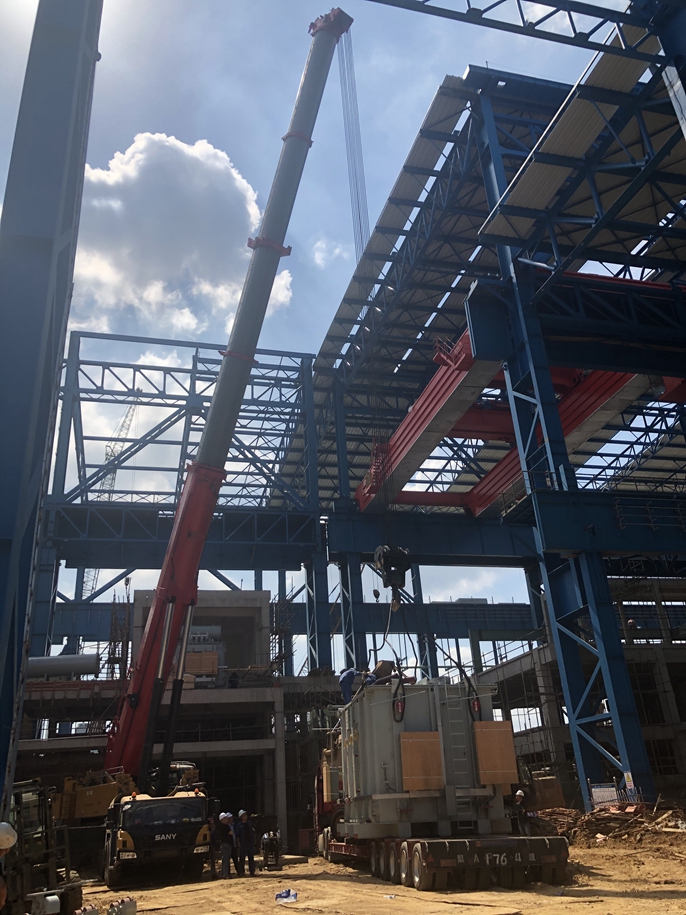 鸿泰电炉炼钢工程项目120吨电炉变压器吊装成功