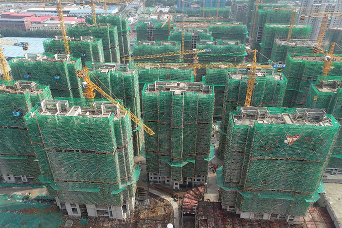 目前,项目22栋住宅已封顶20栋,正在积极进行各楼层砌筑,剩余两栋楼预计八月底完成封顶。