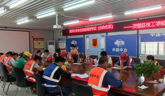 8月19日下午,中国十七冶集团安徽灵璧金色名郡项目组织开展高危行业安全技能培训考试。灵璧县技工学校电教中心主任宋庆军、张奇祥主持此次考试。