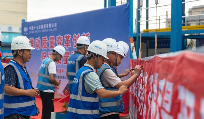 9月2日,中国十七冶上海分公司在嘉定菊园项目举办了以“推动质量变革创新,促进质量强国建设”为主题的“质量月”活动启动仪式。上海分公司总工程师张晓波、各项目技术负责人、现场管理人员参加仪式。