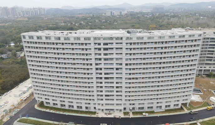 马鞍山市秀山医院二期EPC项目是市重点民生项目之一,按三级甲等医院标准建设,新建床位890张。项目位于马鞍山市湖南东路与秀山湖东三路交叉口,建设内容包括住院楼、行政科研楼、感染病房楼3栋建筑,总建筑面积为73966.13平方米,最大跨度23.7米,建筑高度68米。截至11月10日,行政楼、感染楼已基本完成,正在进行局部修缮和设备调试工作;住院楼暖通风口施工基本收尾,消防报警、送水调试完成,卫生间洁具安装完成近80%;地库正在进行油漆找补,机械停车位已开始调试。
