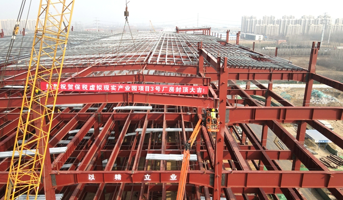 3月8日,中国十七冶山东分公司承建的潍坊综合保税区虚拟现实产业园二期项目厂房顺利封顶,为项目后续建设打下坚实基础。